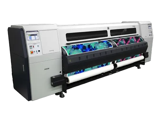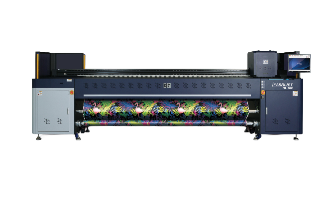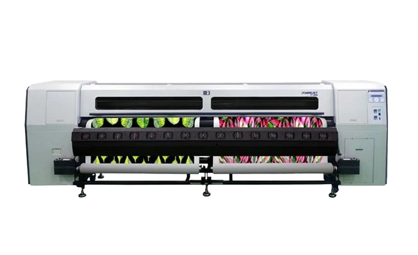 The Fabrijet FT 3204X is a 3.2m wide format dye sublimation printer designed for maximum productivity. It has 8 printheads printing at a maximum speed of 250 m2/h. Enhanced with a dual roll system, it is capable of printing two 1.6m rolls at the same time, making it the best suited solution for home textile and large format soft signage applications