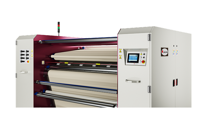 The Monti Antonio C10E is an industrial-grade calender designed specifically for sublimation printing of fabrics in continuous. This machine allows for a seamless, continuous workflow, which is essential for high-volume textile and soft signage production using the dye sublimation transfer process.