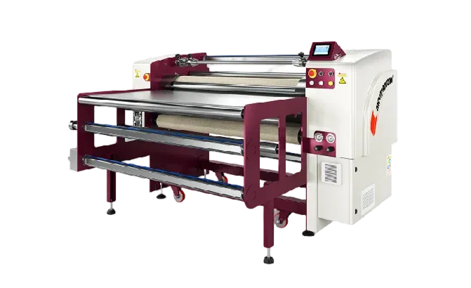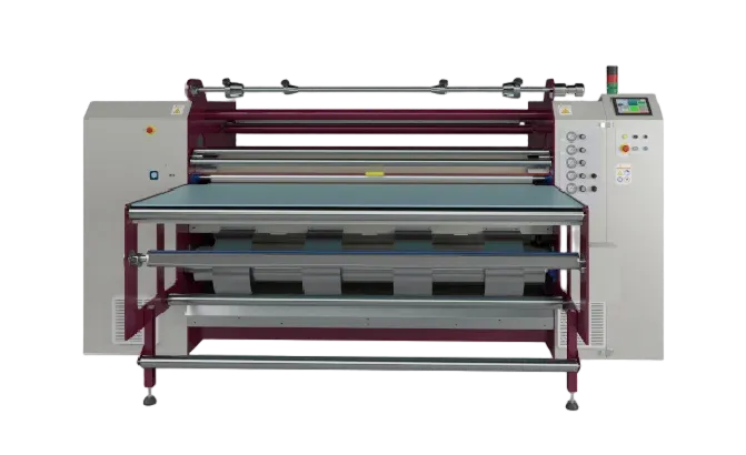 The Monti Antonio T05 is an industrial-grade calender designed for sublimation printing of fabrics in continuous and precut pieces. This highly versatile machine supports both continuous rolls and individual pieces, providing maximum flexibility for high-volume textile production and specialty apparel/graphics applications using the dye sublimation transfer process.