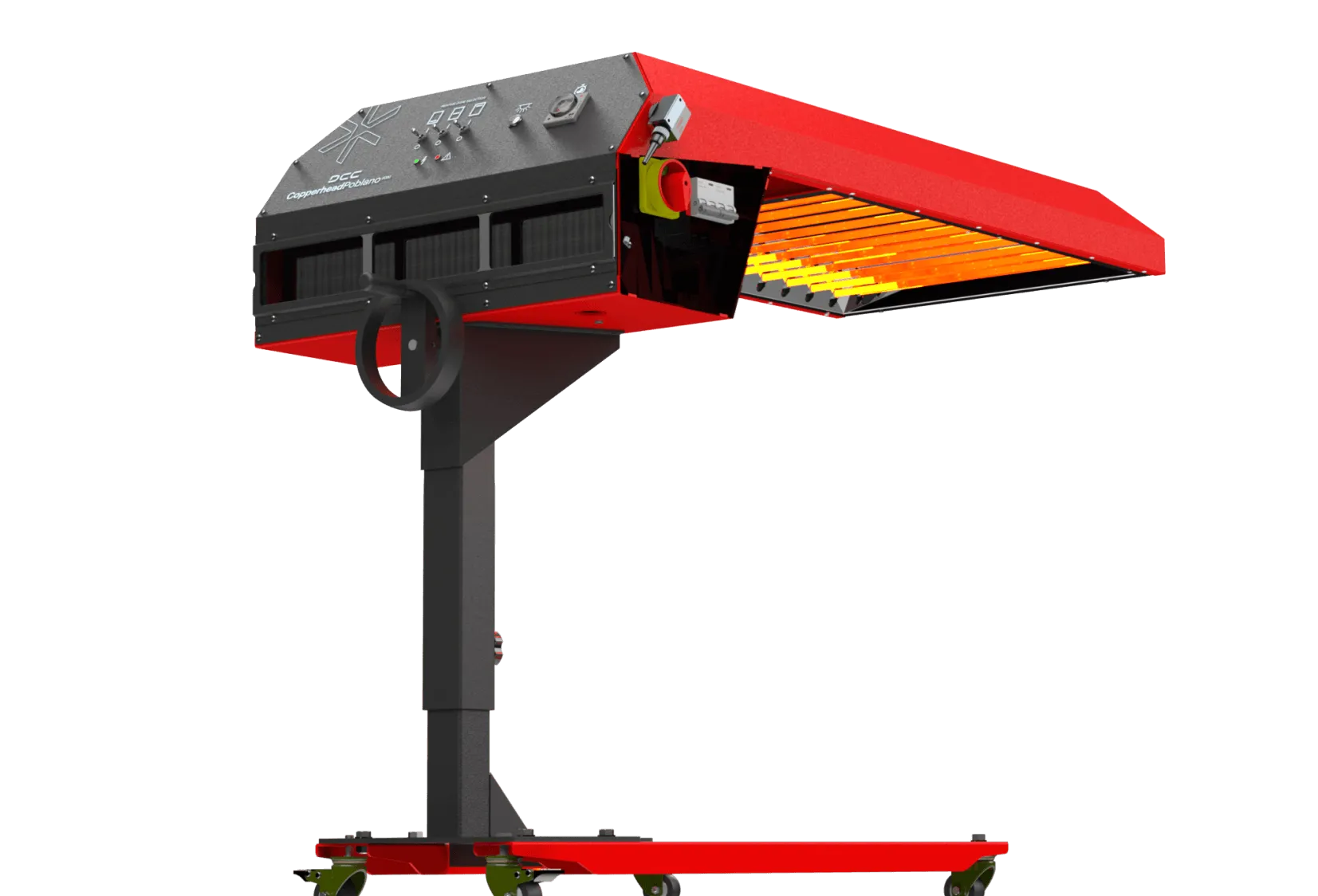 The Poblano is a versatile freestanding quartz flash cure system designed to fit most press brands. Its adjustable sensor activates the flash as the pallet approaches, while medium-wave quartz lamps deliver powerful, even heating. With three independently controlled flashing zones, timed curing, and a reflector array with forced-air heat exchange, Poblano ensures consistent performance. Smooth-rolling, locking casters make positioning quick and easy.
