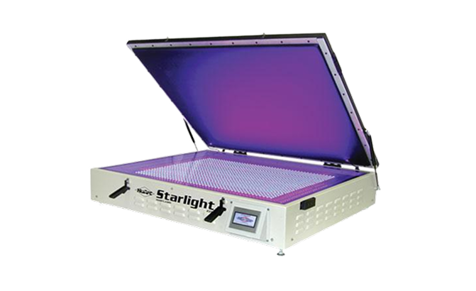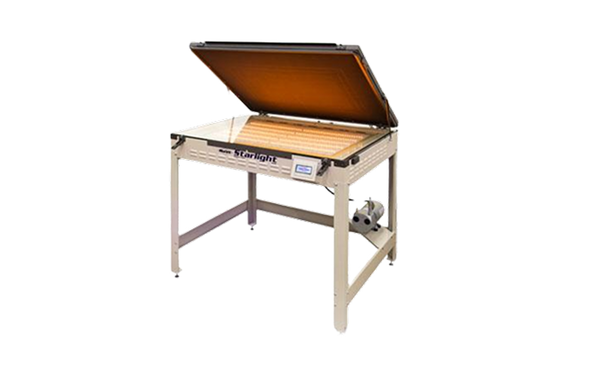 Starlight is NuArc's versatile and affordable tabletop or stand-mounted UV LED screen exposure unit. It is ideal for conventional exposures, and an optional CTS retrofit kit transforms Starlight into a computer-to-screen (CTS) UV LED screen exposure system. Starlight's UV LEDs save energy costs, speed up production, and operate at far lower temperatures than metal-halide lamps