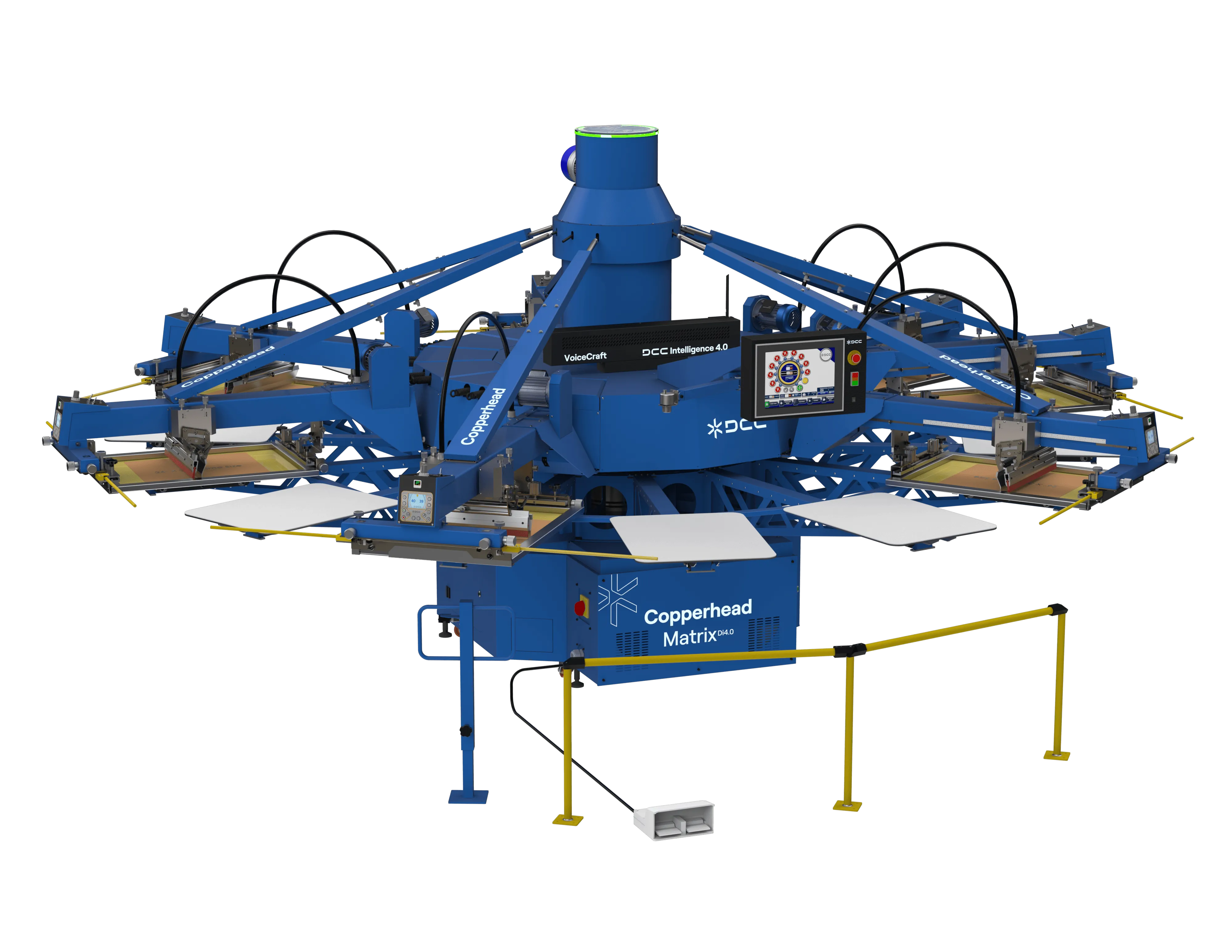 The Copperhead Matrix Di4.0 sets a new benchmark in screen printing innovation. Powered by DCC Intelligence 4.0, it combines advanced technology, exceptional precision, and user-friendly design to deliver outstanding performance and efficiency.